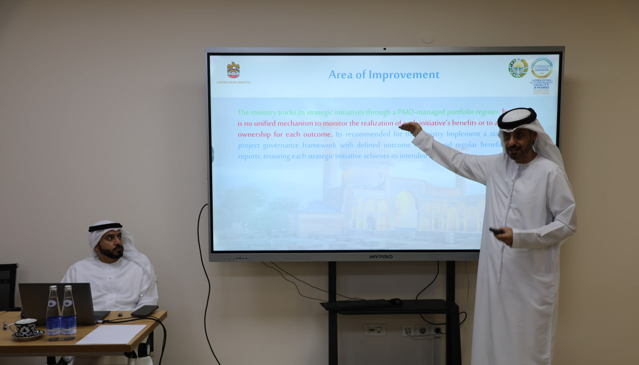 В Узбекистане с 2019 года в соответствии с распоряжением Президента Республики Узбекистан, от 24.06.2019 г. Р-5480 реализуется Программа Uzbekistan Government Quality Award в совместно с Объединёнными Арабскими Эмиратами. Эта программа направлена на повышение эффективности государственного управления на основе лучших международных практик. По признанию ОЭСР Объединенные Арабские Эмираты обладают одной из самых эффективных систем государственного управления в мире.